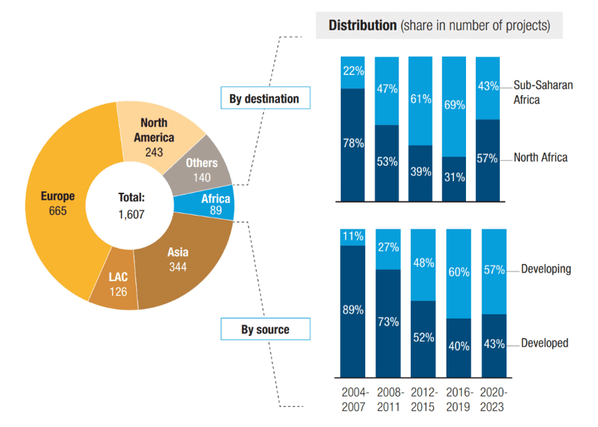 In recent years, the sources of investment have shifted: developing countries, particularly India, now account for the majority of projects, reversing the earlier dominance of investors from developed economies.